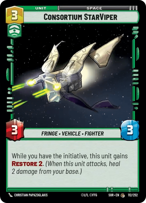 Justin – At a quick glance, it seems like a very average card that will likely be called draft filler by most. Currently though in the card pool, it plays in a strong position of getting valuable trades as a 3/3 against all the cheap Hero space units (Wing Leader, Alliance x-wing, Restored ARC). Unfortunately, it is the opposite effect against Villain decks. I like the cards they’ve added that care about initiative, but ultimately don’t think this one will see a ton of play.