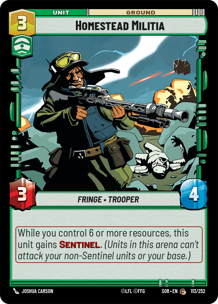 Tyler – Agree with Justin on all counts. Think that the non-leader caveat hurts the most. It’s the most likely unit to stick around on your opponent’s board while carrying damage- if you can’t use this to clear it, then why sacrifice the health? My first impulse was to put this in all my Red aggro decks, but I’m already walking that back in some cases. The designers did a good job of making these rare bases a thoughtful decision and not just an auto-include.