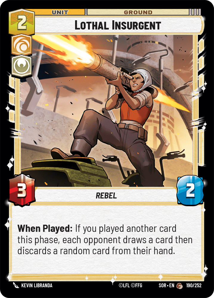 Tyler – SWU’s action sequencing is a little odd in that control decks, that might make 1-2 big plays a round (like dropping a Sentinel) tend to take the initiative easier than aggro decks with lots of chumps that have to attack sequentially. I wonder if that’s going to create a natural tension in the Symps usability. Maybe there will be enough Trooper synergy on full release that he’s still a staple of those decks. For now, we’re testing him in Tarkin Aggro.