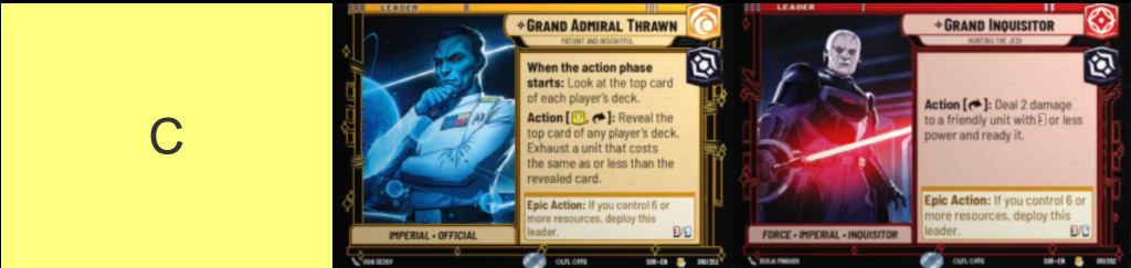 Am I optimistic that Thrawn will meaningfully climb tiers as more cards come out and the meta settles? I’m not sure, actually. I think GI may actually have more of a future. Thrawn is hard for me to get a bead on in terms of whether his tools will actually be able to translate to wins.