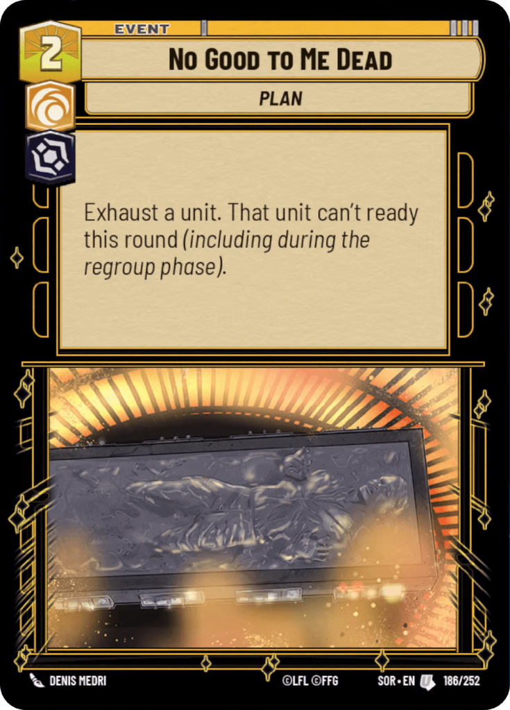 I personally value Cunning as the better Event in its space, but No Good to Me Dead is no slouch at 2-cost. A solid pick for sure.