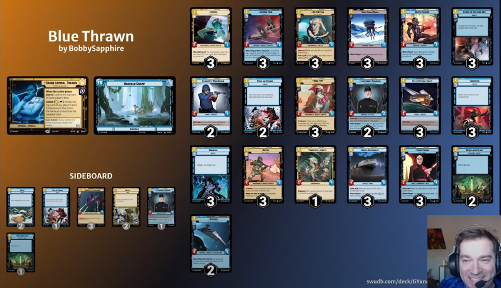 The community has a lively thread for Thrawn deckbuilding happening in the Official SWU Discord. The result this week was a build brought to us by BobbySapphire. As stated in his video, this probably isn’t a tier 1 build, but it looks fun and effective so we’re giving it a boost in our rankings.