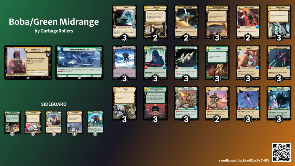 So how can we put some of these ideas into practice and achieve that elusive >50% win rate against Boba? Here’s an off-meta deck that combines many of the aforementioned tools to score some wins. Hope it works for you too!