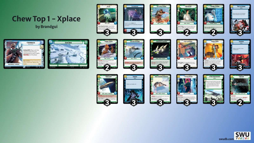 This week we’re elevating Chewbacca/Green to Tier 2 from Tier 3. The testing we’ve done with the walking carpet indicates that, while his power level isn’t extreme, he has solid matchups into most decks. It’s possible that a skilled player could go far piloting this deck. We’re happy to see an underplayed leader moving up!