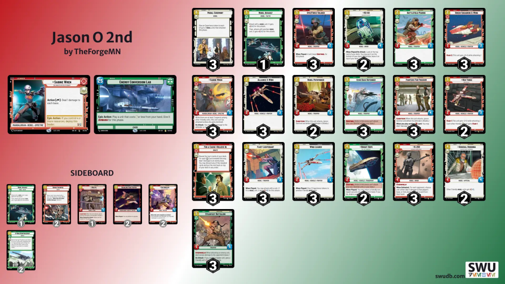 7th Place Justin – Sabine / Red https://swudb.com/deck/FYuYvgQvLaHWY