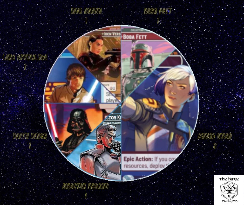 A $1K tourney in Minnestoa had 90 attendees this week. Top 8 was Iden/Green, Sabine/Green, Sabine/Yellow, Vader/Green, Luke/Green, Krennic/Green, and Sabine Mono Red. Final was an Iden/Green versus Sabine/Green with Iden taking home the crown! Thanks to L0reSWU for shipping us some helpful graphics about the event below!
