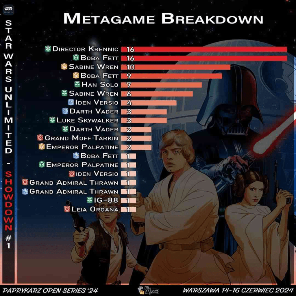 Poland continues to lead continental Europe in tournament size, this week racking up a 97-person tournament. Top 8 was: 3 Han/Green, 3 Krennic/Green, Boba/Yellow, Iden/Blue.