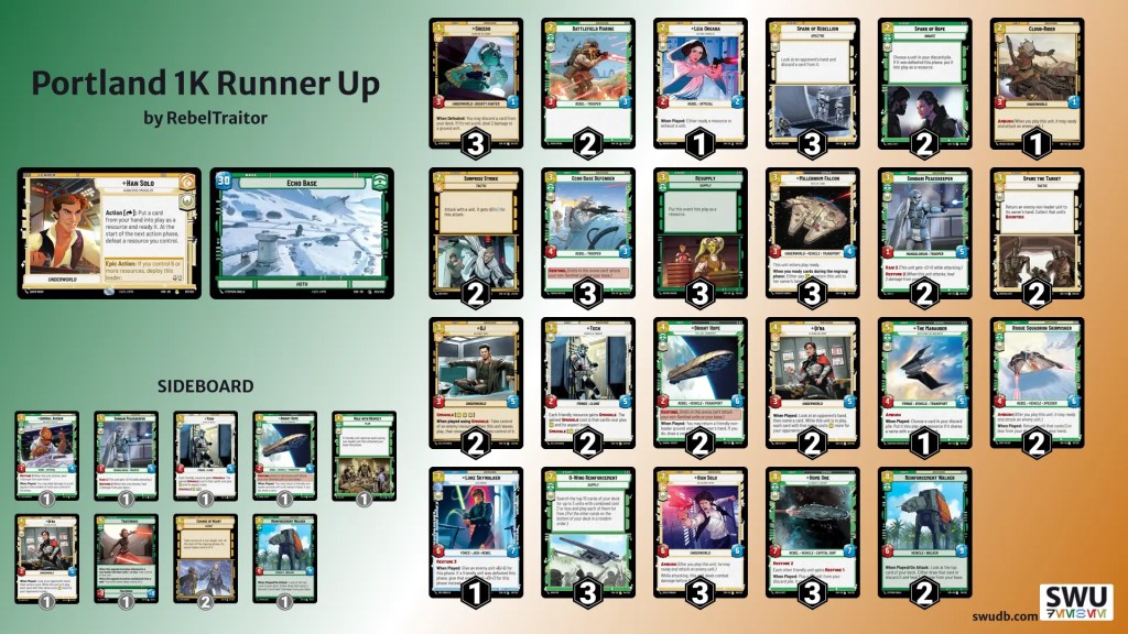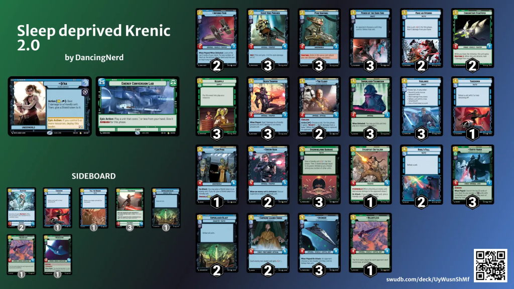 First, is the addition of Palpatine/Green which won a $1K event in Iowa this week (more on that below.) This goes in our “soft” control lane where other ramp decks reside.