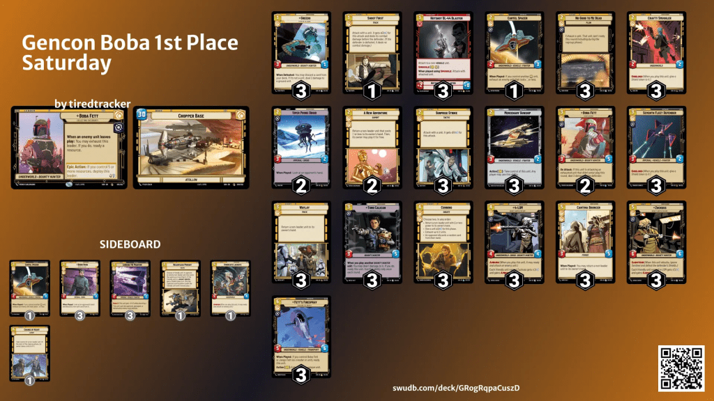 In a healthy card game, Aggressive decks, Midrange decks and Control decks all operate in a virtuous rock-paper-scissors that ensures each of those three archetypes has a bad matchup. However, that’s not what’s happening in SWU right now. While the community is caught up on Boba’s obviously pushed stats and supporting cards, it’s actually Sabine that’s distorting the meta. Because Sabine is soooo powerful, and there are only three ways to beat it (more on that in a moment), Control decks can’t take their proper place in the meta. You know how many Palpatine decks have made top 8 at PQs so far? Zero. In that kind of an environment, is it any wonder that Boba is flourishing? Sure, Boba is over curve, but it’s actually Sabine keeping down control that gives him a 40% share of the meta.