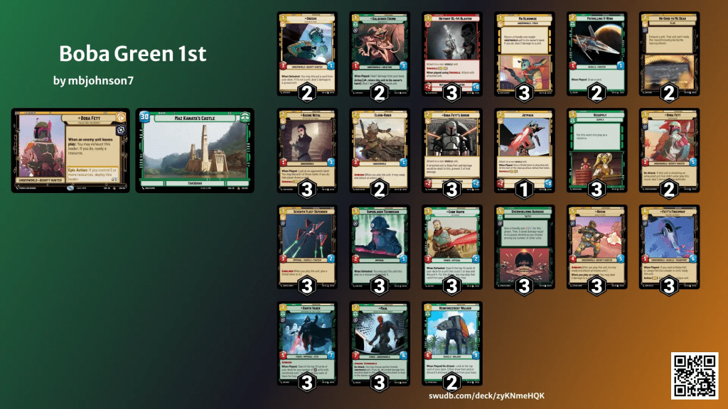 Sabine/Green is one of the most powerful decks in the game- and has been since before SWU’s release 7 months ago. It’s the foundational pillar of the Aggressive archetype and shows no signs of slowing down as we approach set 3. It’s won multiple Planetary Qualifiers.