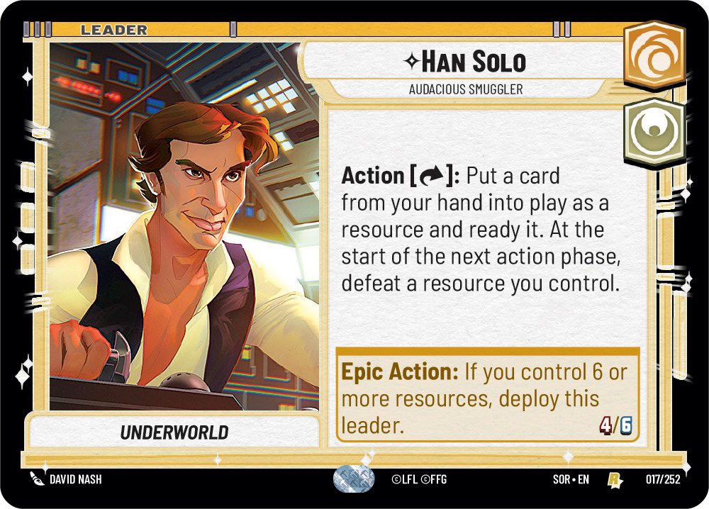 Justin – OVERRATED. This is not Boba Fett. Han is strong, but the strongest parts of his game are being the best double Cunning deck, and being the only leader that can break the DJ smuggle effect. Take DJ out of the equation, and Han likely isn’t winning on the same levels as Boba during PQ season.