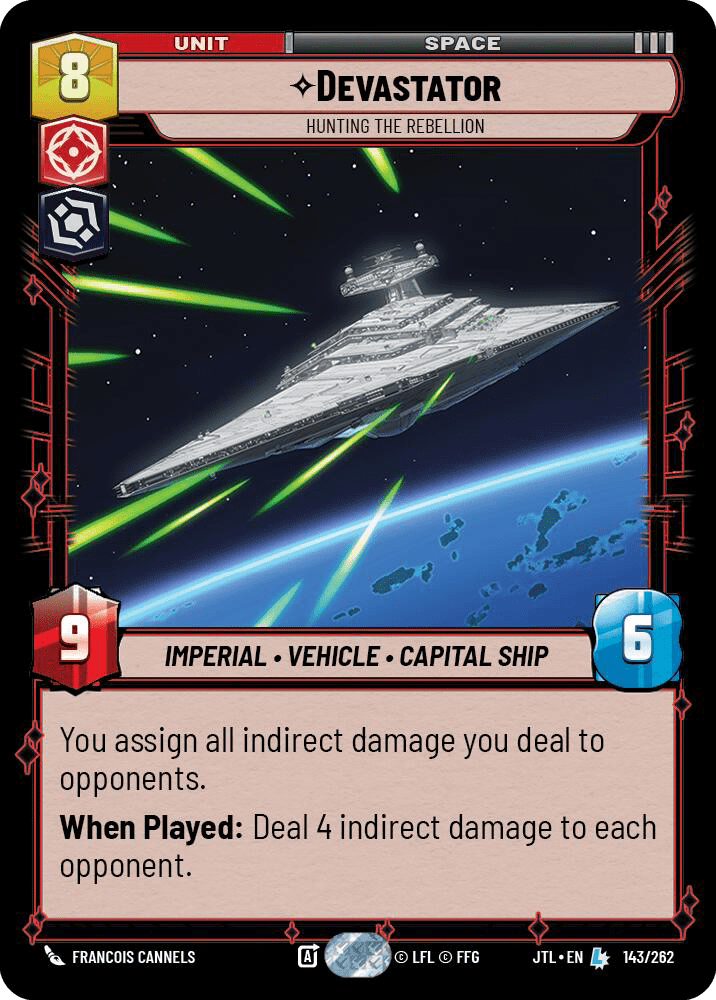 You’ve probably heard people singing Devastator’s praises already, but it’s work cataloguing just how over curve it is. The damage ability alone is worth two cost points, meaning we’re effectively getting a 15-stat ship for 6. Given that a 6-cost ship would normally have 13 stats, that means Devastator is a full point over the curve. And that’s before we explore all the utility of its static effect on indirect damage!