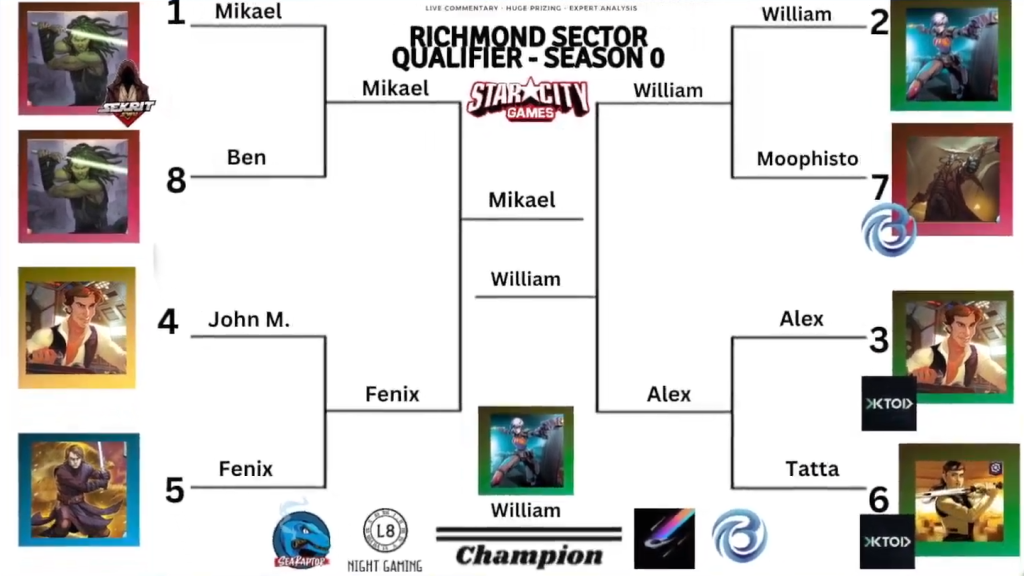 This weekend was the first major tournament since Jango Fett, Triple Dark Raid, and DJ were suspended- the Sector Qualifier in Richmond, Virgina. The results are available in detail from SWU Competitive Hub. Sabine/ECL took the crown, which is not totally surprising given that its primary predators keep getting banned. All the decks that made top 8 were already on our meta snapshot as well.