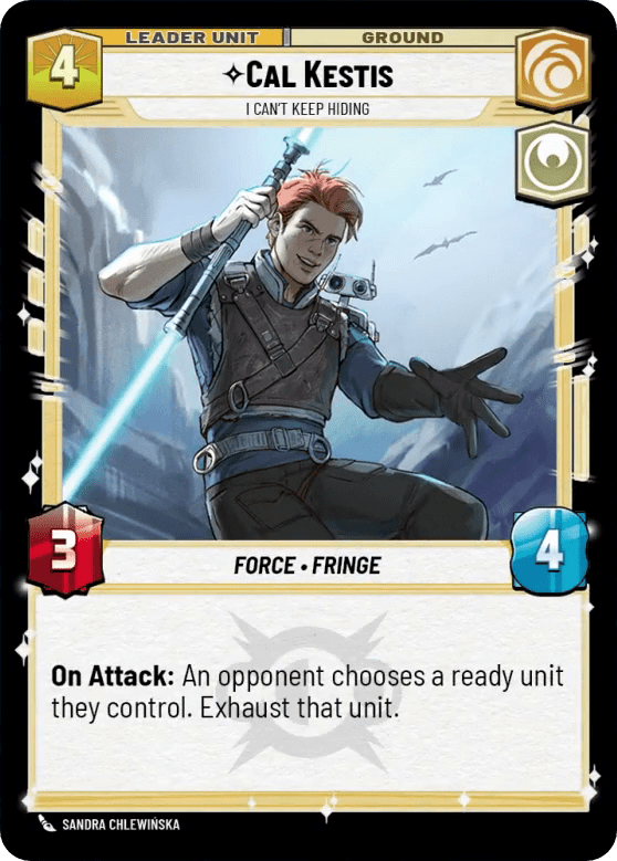 Cal has two red flags. One, giving your opponent choices is always bad. Exhausting your opponent’s worst unit just isn’t good. Second, leaders with four health struggle in this game. When any stiff breeze knocks you off the board, where’s the upside? It’s hard to see Cal finding a meta niche with such glaring vulnerabilities- and he certainly isn’t going to replace Sabine as the premiere 4-drop leader.