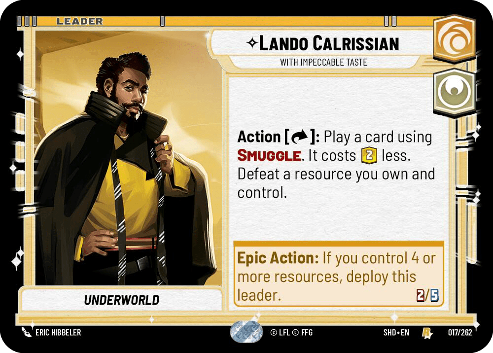 Lando is focused squarely around the Smuggle keyword. He doesn’t seem like a leader who could get better without making more Smuggle cards… Unless, we take advantage of the unintended consequences of his ability! Since Lando downramps when his ability is used, cards that trigger off having less resources than an opponent are particularly valuable with him. FFG’s already given us Cham Syndulla. Another such card would give Lando a boost!