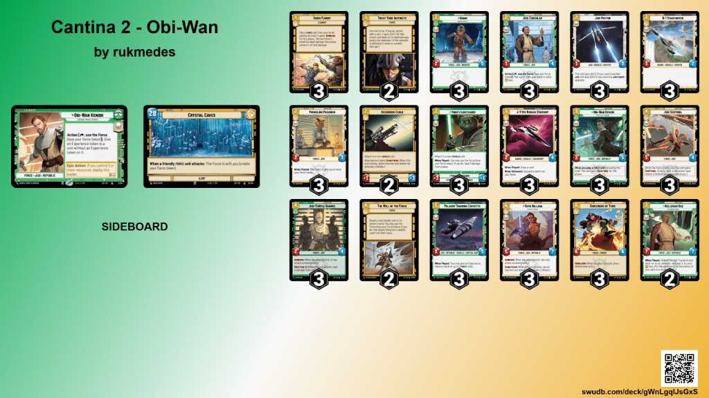 This deck plays like a shield wall – built to absorb pressure, outlast aggressive decks, and skirmish every turn to gain advantage. With Obi-Wan’s ability to pump out experience tokens, you’ll keep your key units alive long enough to grind down the opponent.
