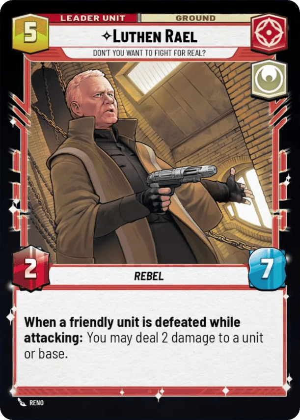 Luthen’s ability is a weirdly specific one. Only a small portion of the time will you be able to trigger the specific conditions required to get his extra damage. Compare him to a leader like Quinlan or Cad who can easily proc their pings and Luthen’s deficiencies are clear. Combine that with a below-curve leader side and it’s hard to see how Luthen will ever find a meta niche.
